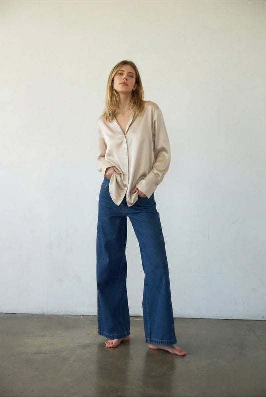 Daria French Cuff Silk Blouse - Oat Milk