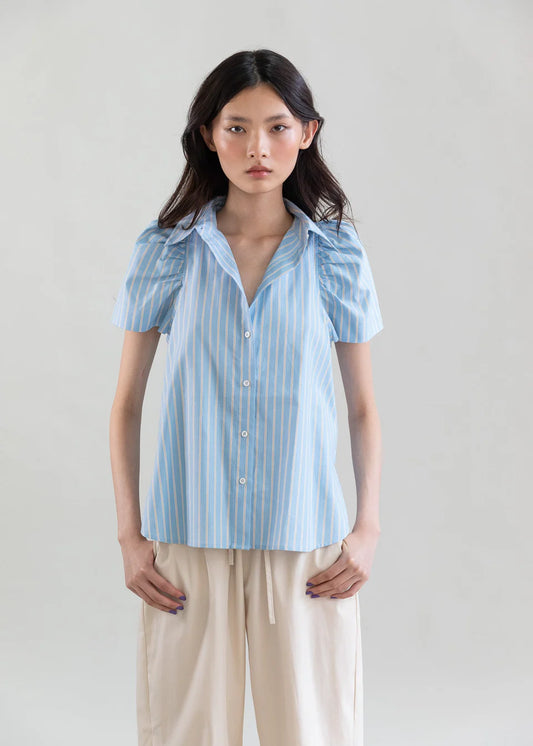 Candy Stripe Oxford Short puff sleeve Shirt